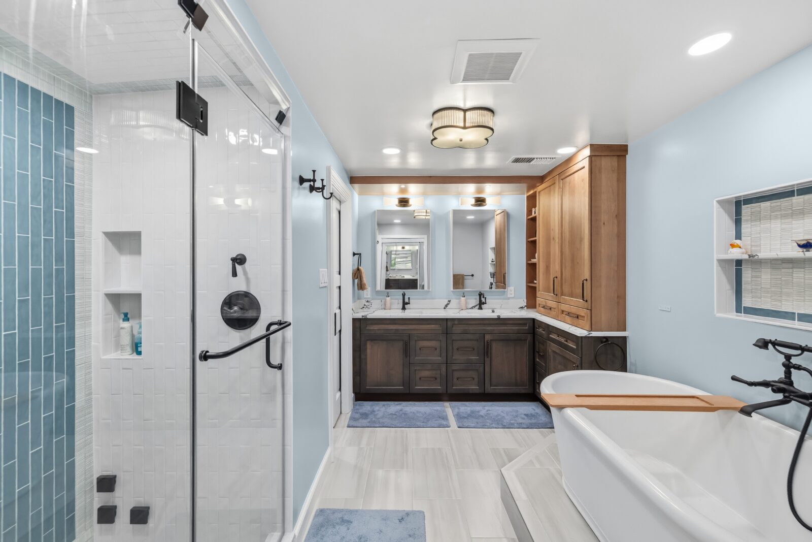 Swinging doors offer a timeless design that complements both traditional and contemporary bathrooms.